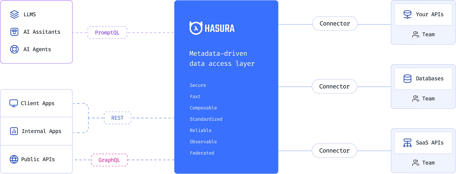 I want to show you something incredible. In this post, I’ll talk about Hasura - an open-source engine that provides instant, real-time GraphQL and REST APIs for your databases and applications. It acts as a data access layer, simplifying the process of building and managing APIs by automating the generation of GraphQL or REST endpoints based on your existing database structure. The Hasura engine is an open source project which supercharges the building of modern applications by providing access to data via a single, composable, secure API endpoint.