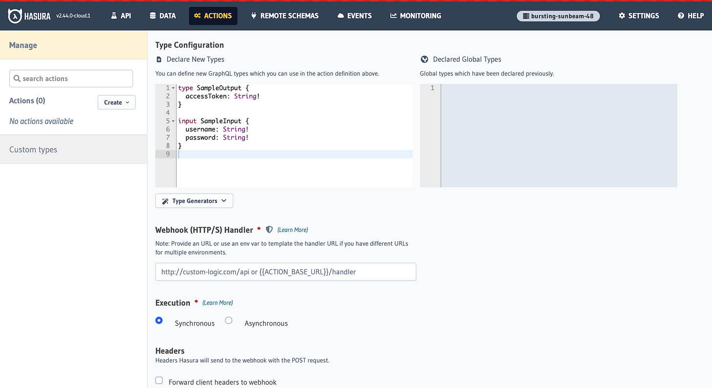 Custom Business Logic: Users can add custom business logic through serverless functions or REST APIs that Hasura can integrate with.