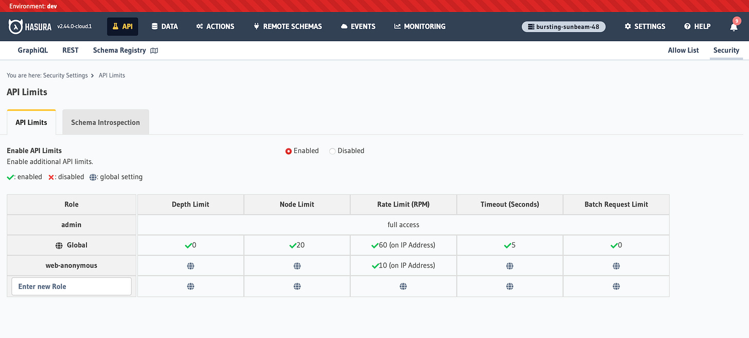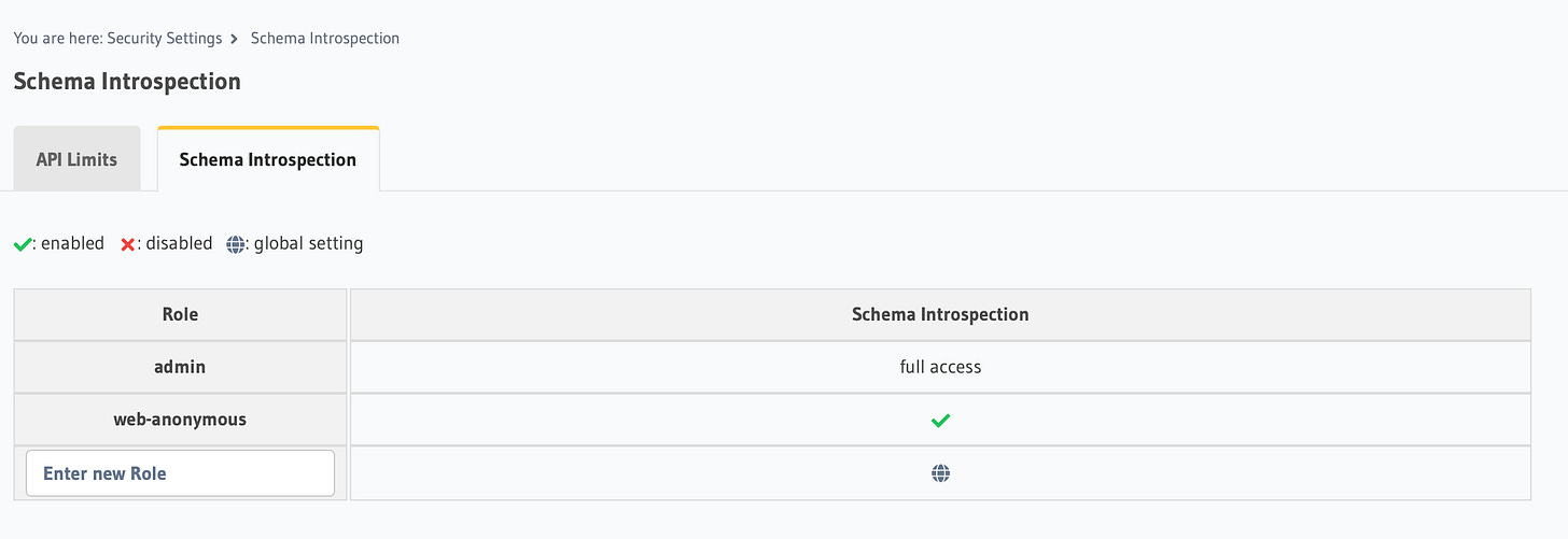 Schema-introspection can also be limited to roles and that is a very welcome feature that is available right in the UI.